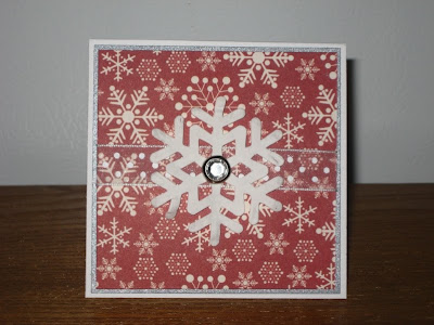 Speaking of the background, that gorgeous paper is more from the Cosmo Cricket Jolly by Golly collection. I know I've been using it a lot, but there are just sooo many awesome designs in that pack! The little snowflake embellisment at the bottom was created with a small punch and finished off with a Zva Creative clear crystal dot.